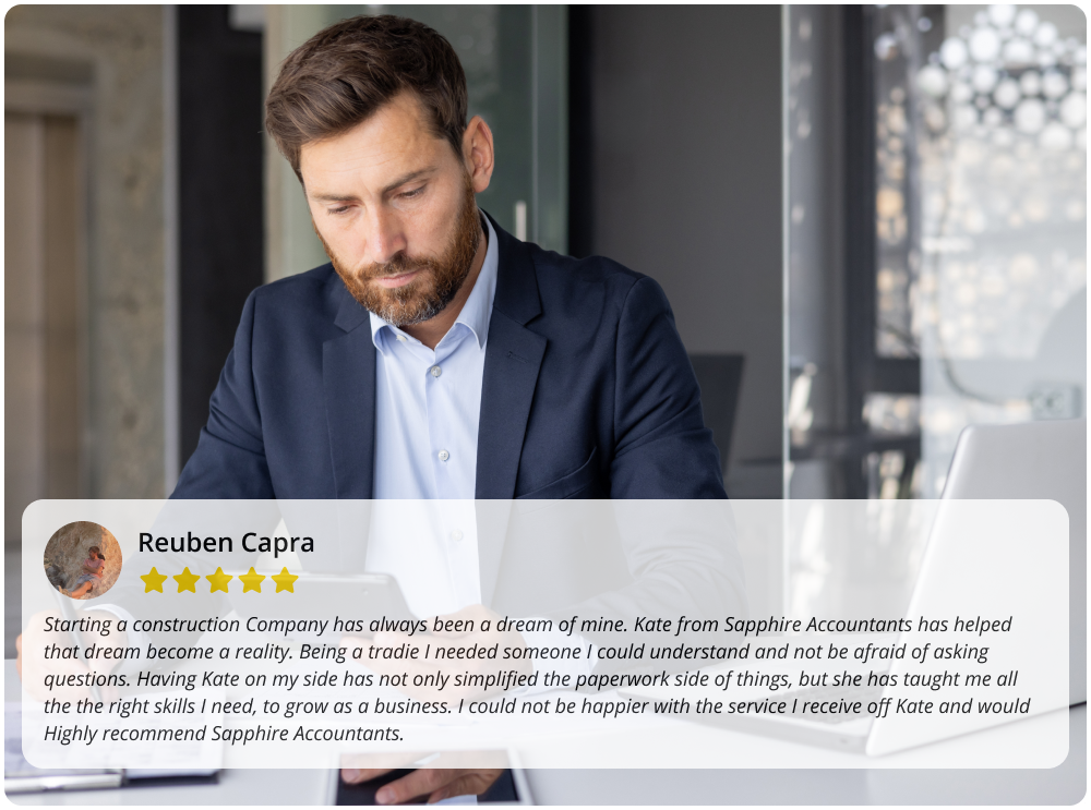 The information provided on this site is general only and does not constitute legal advice. Each legal matter is unique. You should consult a qualified legal professional for advice specific to your situation. Submitting an enquiry does not create a client relationship. SAPPHIRE ACCOUNTANTS & TAX AGENTS is a trading name of SAPPHIRE ACCOUNTANTS & TAX AGENTS - ABN: 53137242721